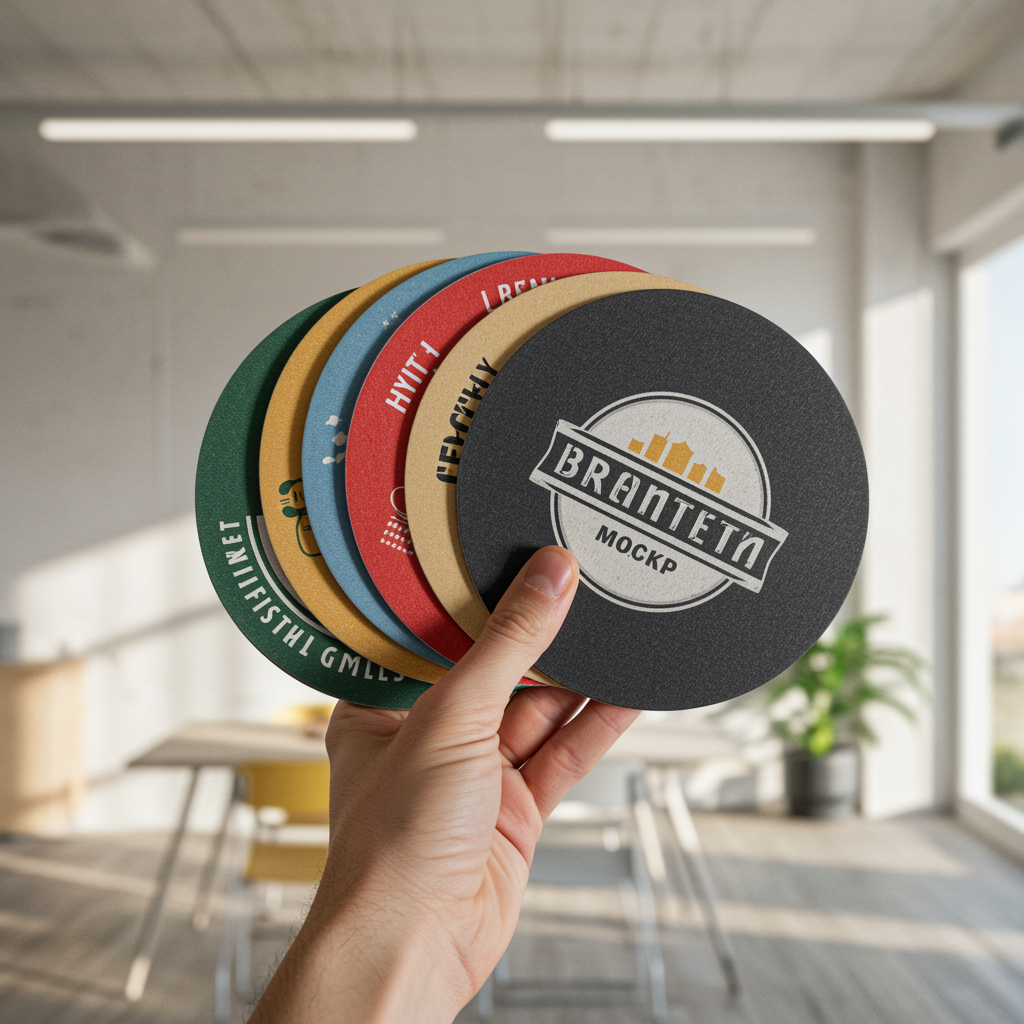 Для классических бирдекелей под пиво чаще используется специальный впитывающий пивной картон, а для костеров под горячие напитки и корпоративные подставки — переплётный картон или кашированные решения с декоративными бумагами и ламинацией.